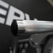Thermoplastic rubber handgrips secured with aluminum end caps for durability and improved feel.