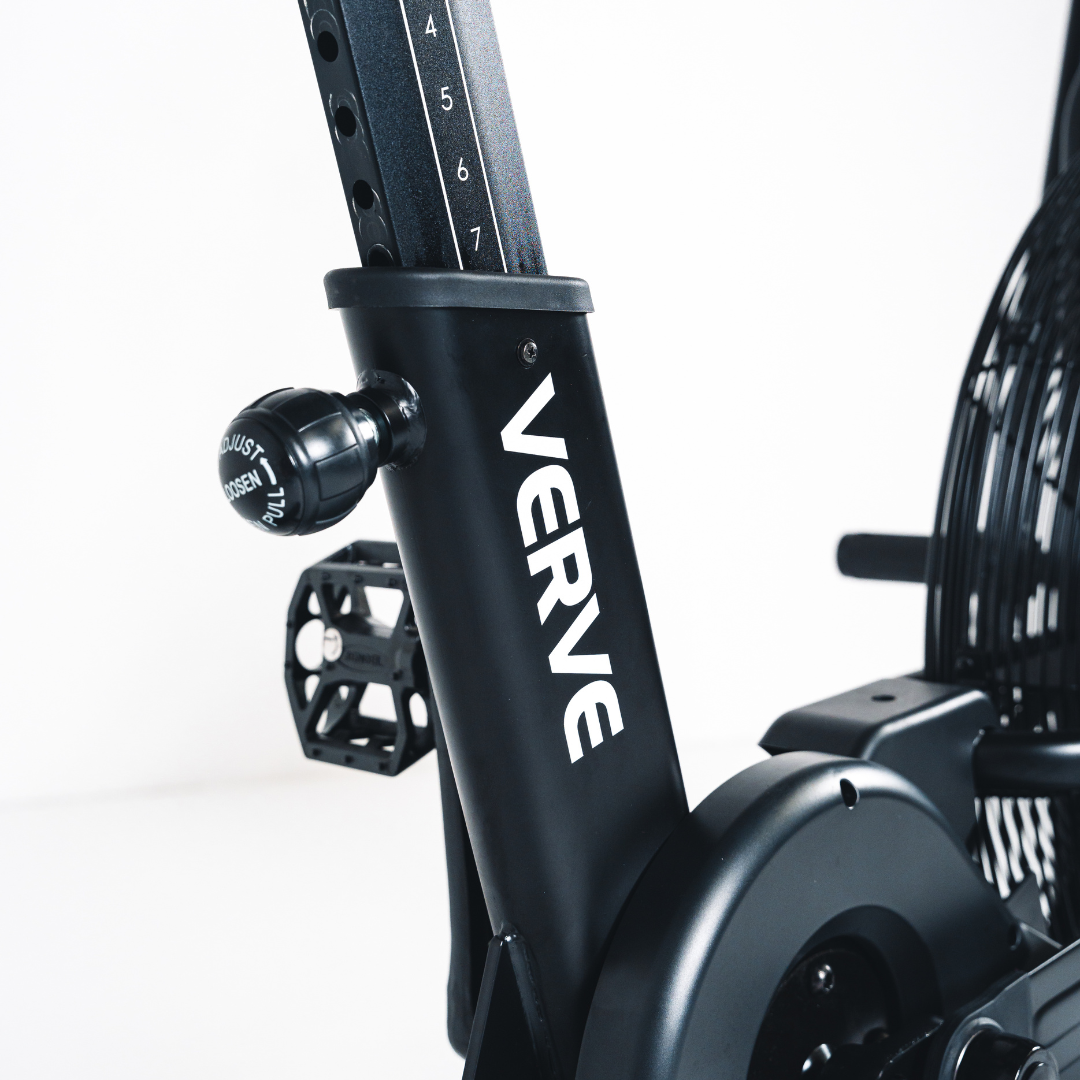 3) CUSTOMISED COMFORT FOR EVERY RIDER: Understanding that comfort is key to a successful workout, the VERVE Air Bike is designed with adjustable features to fit every body type and preference. The ergonomically designed seat can be adjusted both vertically and horizontally, ensuring a perfect fit for all users. The multi-grip handlebars allow for a variety of hand positions, catering to your individual workout style. This means whether you're sprinting to the finish or engaged in a long, endurance-building ride, you'll do so with maximum comfort and efficiency.