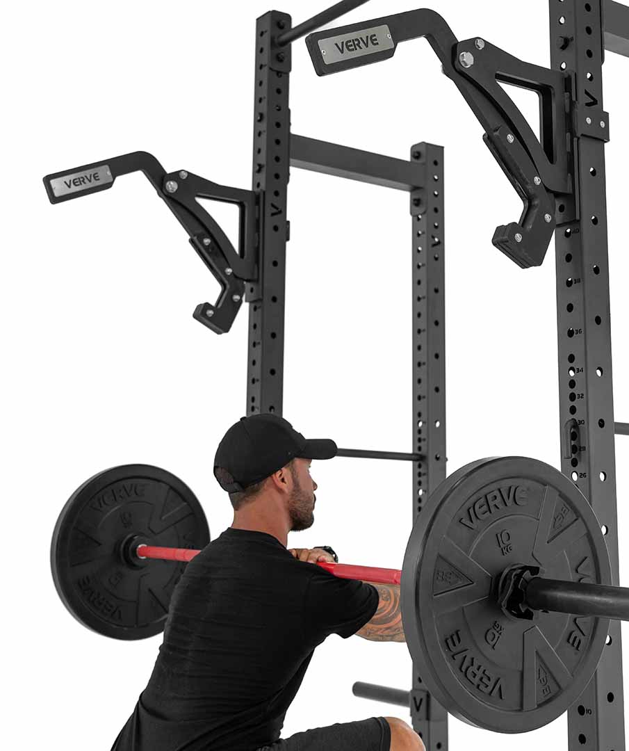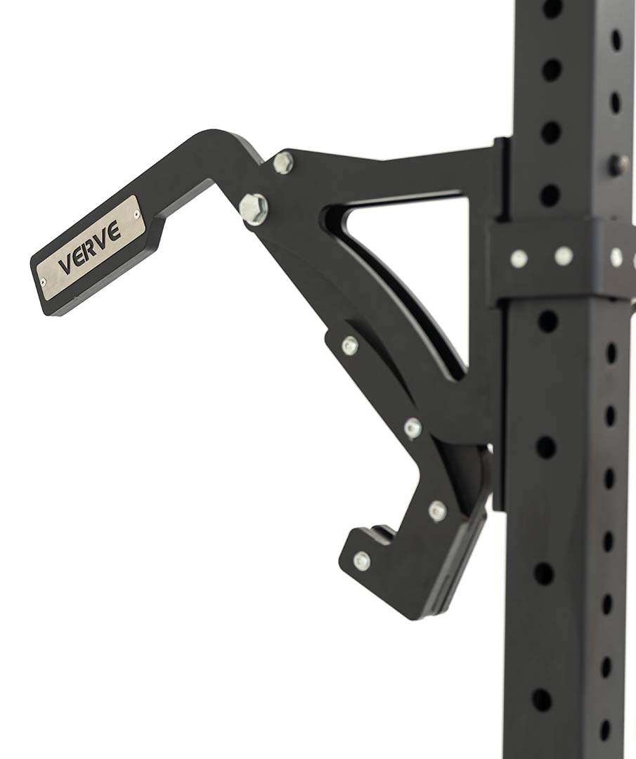 Our new version 2 Monolift Attachment gives athletes the ability to safely squat and bench press without having to walk or shift the bar out. Sold in pairs, this version of the VERVE Monolift takes this attachment to a whole new level, with thicker support arms, plastic J-hooks for protecting the bar and a much sturdier design all-round to suit even the heaviest lifts.