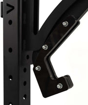 This Monolift Rack attachment is built with a counter weight handle at the top of the Monolift. This allows the athlete to lift the bar off while staying in the place and the hooks will swing directly towards the rack out of the way. There is no need for the athlete to move backwards, these arms provide enough space for the workout to be performed.